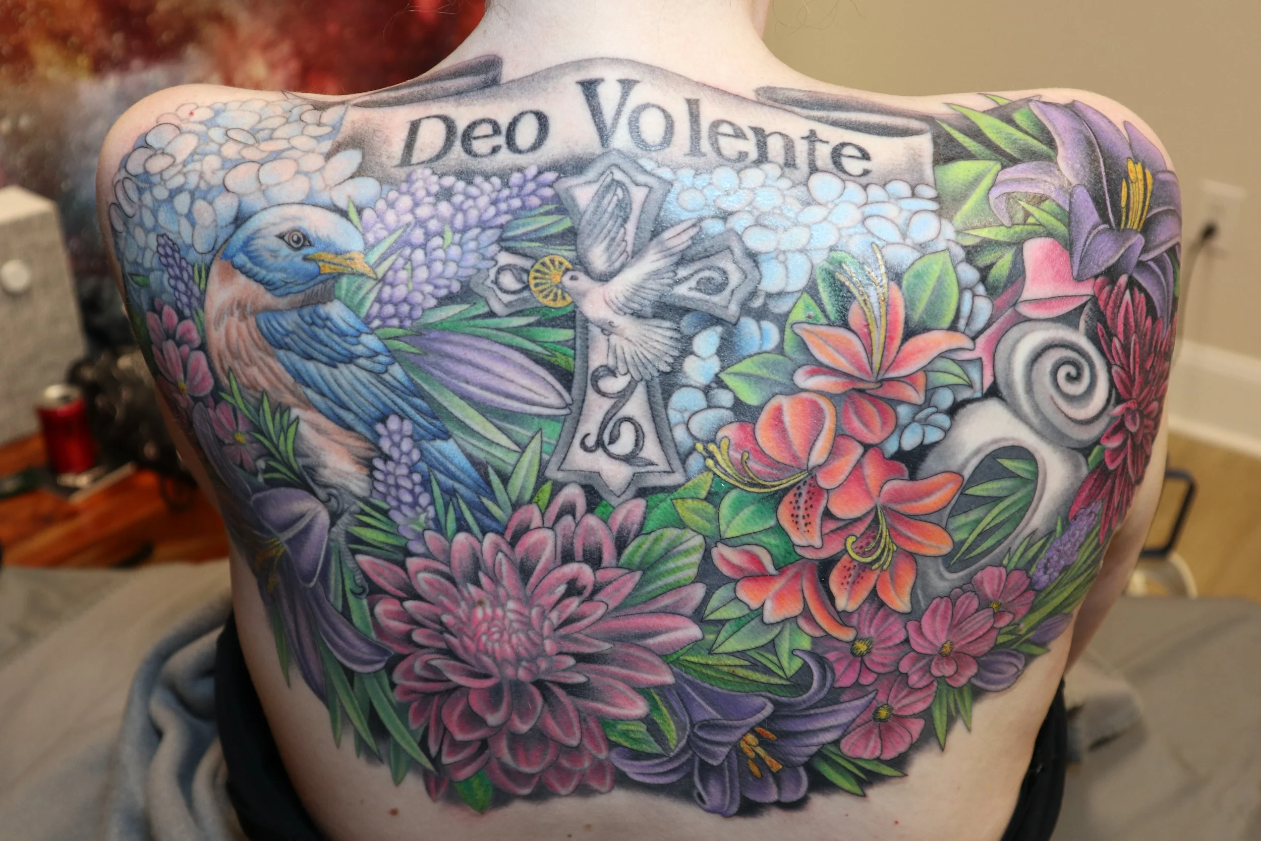 “If God Wills it.” The art of change of letting go. A tattoo done to hallmark the triumph of a client over cancer.