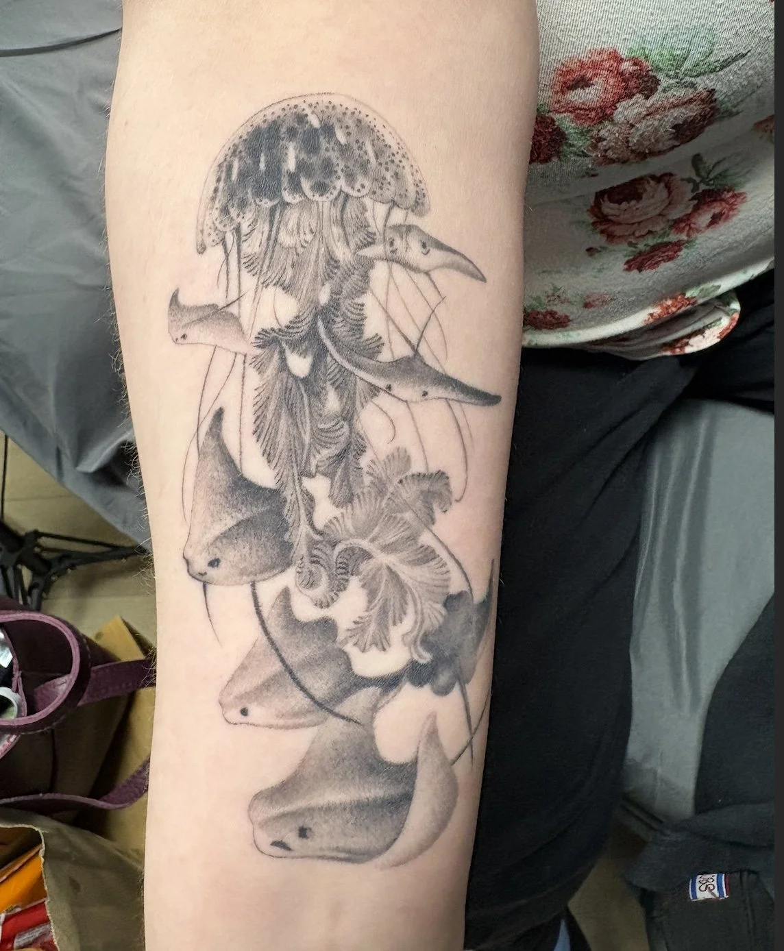 Jellyfish and Stingray Arm Tattoo | Ocean-Inspired Realism in Charlotte, NC